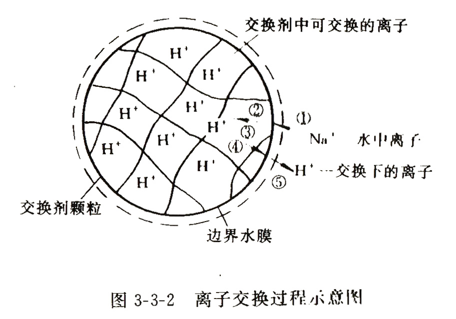 (1)水中的Na+逐步擴散到樹脂的顆粒表面的邊界水膜處,這步稱為膜擴散。
