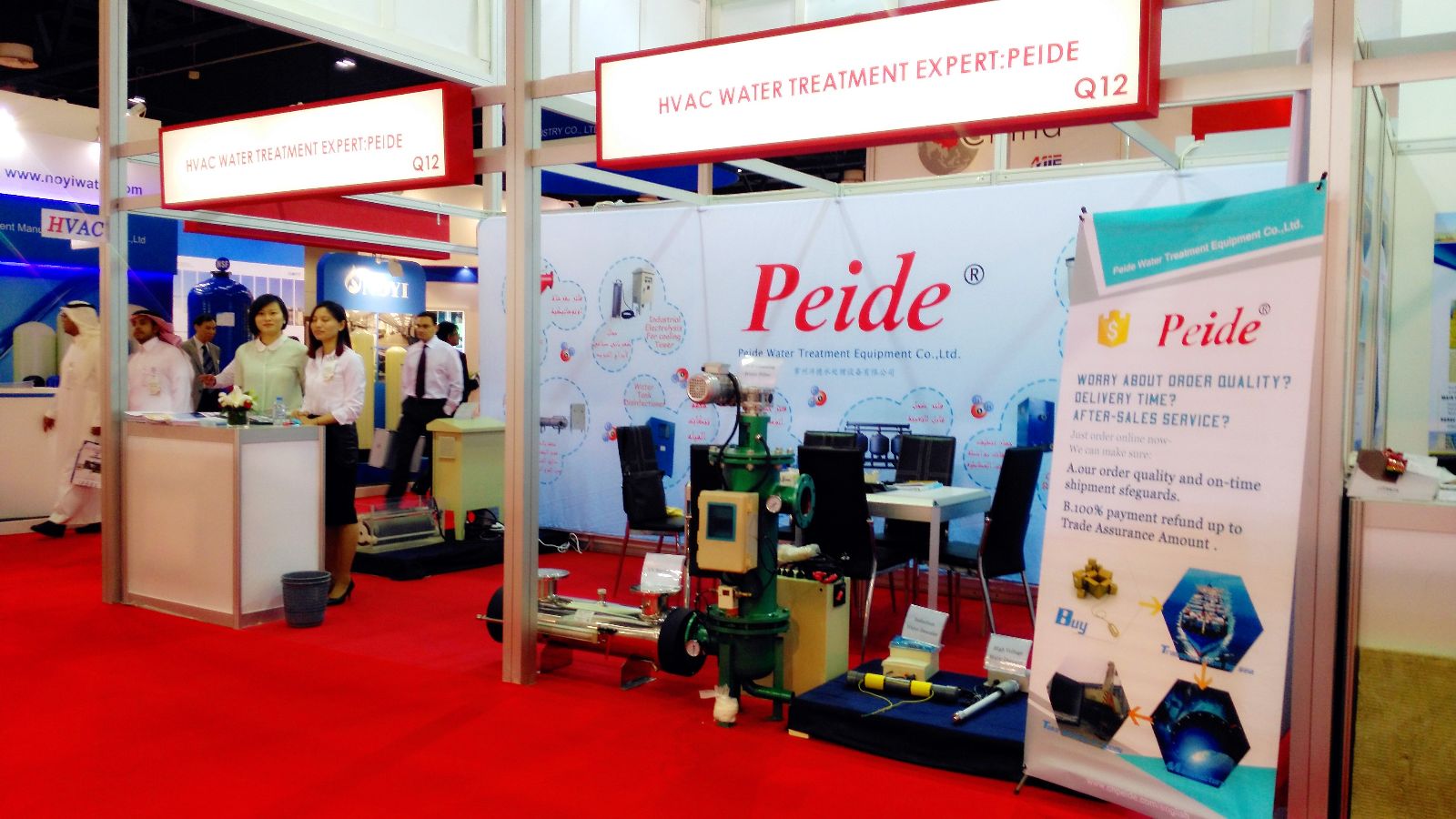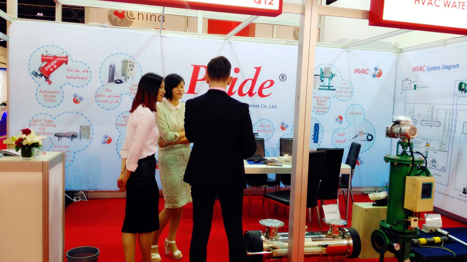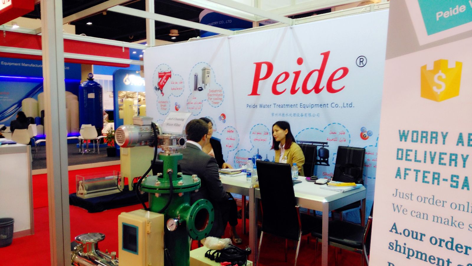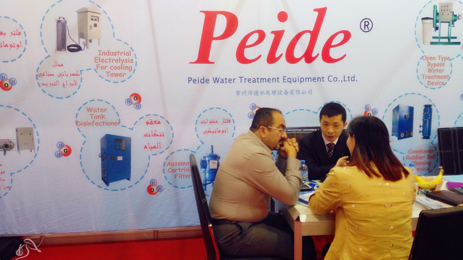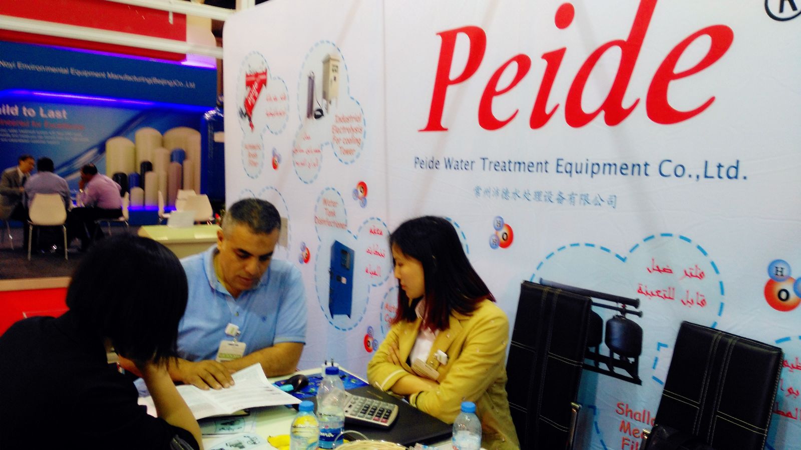 沛德水處理工程師及銷售人員與客戶進(jìn)行親切交談