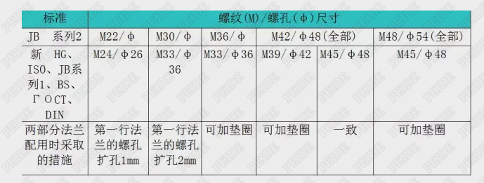 2.部分老標準法蘭(JB系列2)的螺孔能擴孔1~2mm,另有一部分可在安裝時加墊圈;