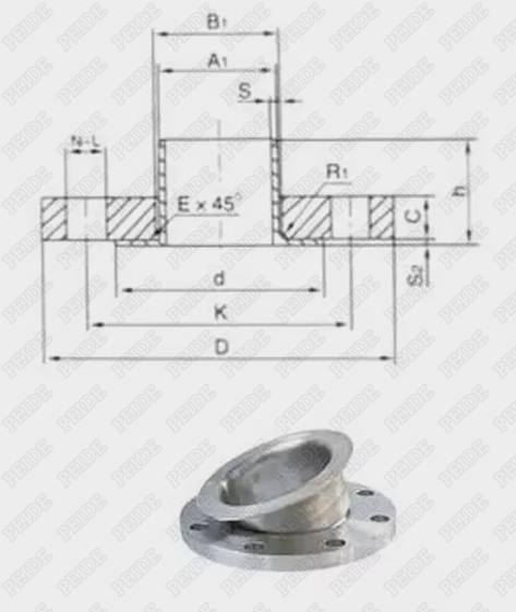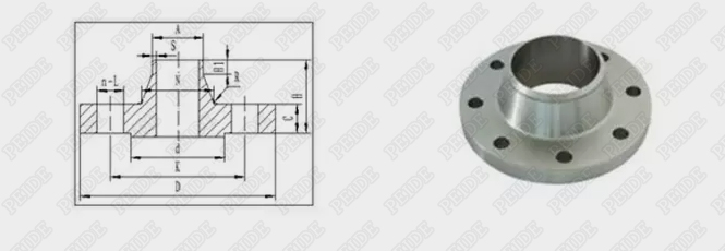 帶頸平焊法蘭同板式平焊法蘭一樣也是將鋼管、管件等伸入法蘭內通過角焊縫與設備或管道連接的法蘭。