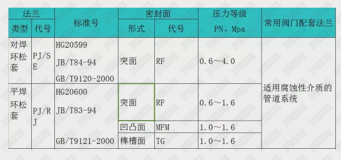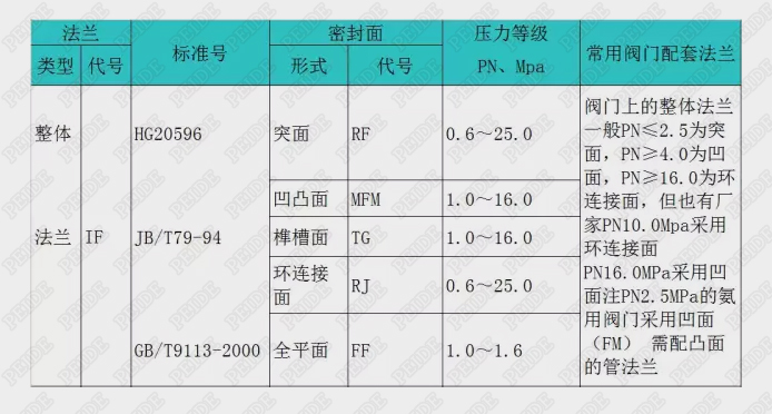 密封面形式:突面(RF)、凹凸面(MFM)、榫槽面(TG)、環連接面(RJ)
