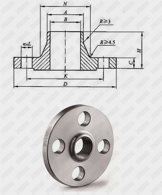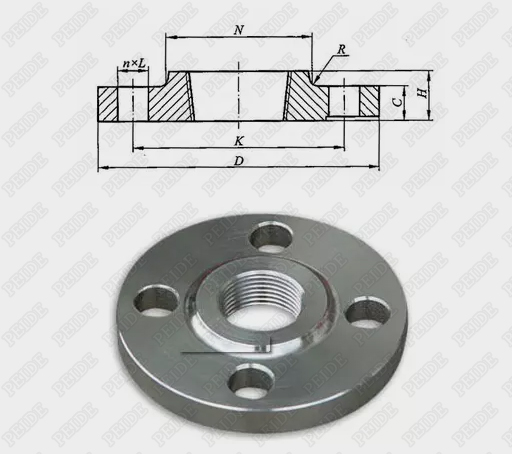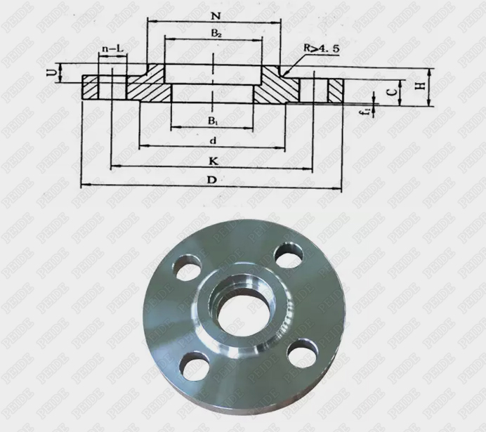 螺紋法蘭是將法蘭的內孔加工成管螺紋,并和帶螺紋的管子配套實現連接,是一種非焊接法蘭。它和平焊法蘭或對焊法蘭相比,螺紋法蘭具有安裝、維修方便的特點,可在一些現場不允許焊接的管線上使用。合金鋼法蘭有足夠的強度,但不易焊接,或焊接性能不好,亦可選擇螺紋法蘭。但在管道溫度變化急劇或溫度高于260℃低于-45℃的條件下,建議不使用螺紋法蘭,以免發生泄漏。