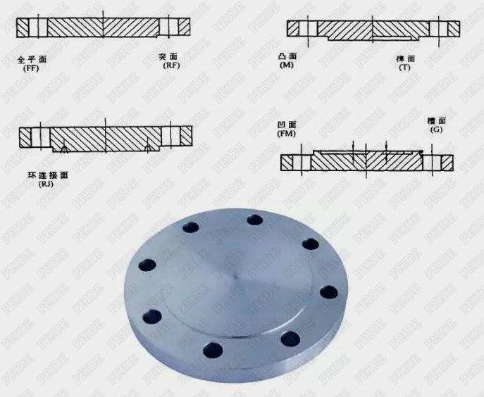 突面(RF)、凹面(FM),凸面(M)、榫面(T),槽面(G),全平面(FF)。