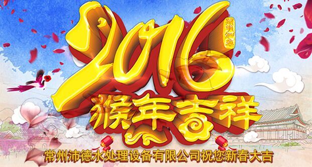 值此新春佳節之際,常州沛德水處理設備有限公司全體員工感謝您一年來對我公司的大力支持和真誠信賴,祝福您闔家歡樂,猴年大吉!